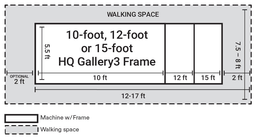 **March 2026 Improvement - The Amara 24 now ships standard with the The Gallery3 Frame featuring a built-in lift system with three preset heights, making it easy to adjust the frame from 28” to 51” at the touch of a button for a more comfortable quilting experience. Switch between loading your quilt in Standard View or Clear View with the QuiltMaster™ DuoLoad™ system. Made of high-quality steel, the HQ Gallery3 Frame is a robust, professional-grade combination table and frame system for the home or professional studio.